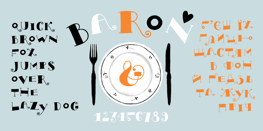 Contrast font pair with Proba Pro Light (1 of 1)1 font families similar to Baron TypeBaron Type supports 29 languagesUkrainian, English, Russian, Belarusian, Serbian, Bulgarian, Karakalpak, Uzbek (Lat.), Abazin, Avar, Agul, Adyghe, Darginsky, Ingush, Kabardino-Circassian, Kabardian, Karachay-Balkar, Kumyk, Lak, Lezghian, Macedonian, Mordovian-Moksha, Mordovian-Erzya, Nogai, Rutulian, Tabasaran, Tatar, Tsakhur, Chechen Functions of font family Baron TypeApplication in layout: