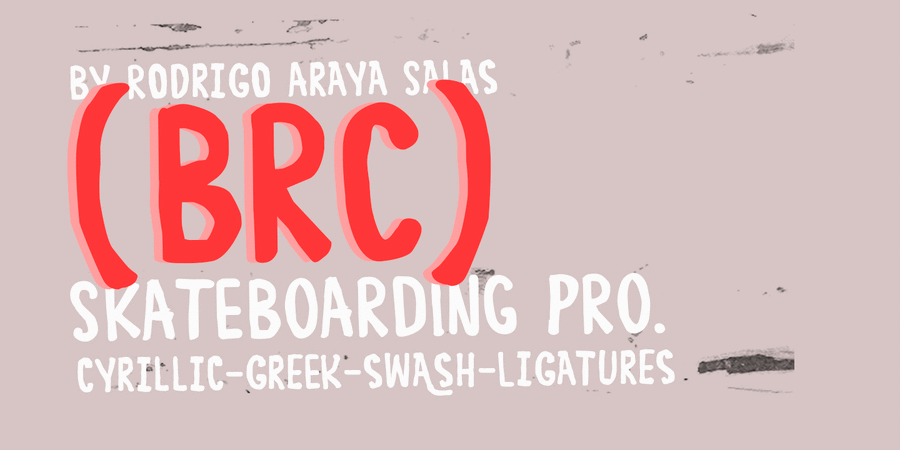 BRC is an informal handwritten font with a bold street mood, supporting many European languages, as well as Cyrillic and Greek. This font has rich possibilities in the form of alternative glyphs, swashes and rare ligatures. Typeface was Designed by Rodrigo Araya Salas in 2014.