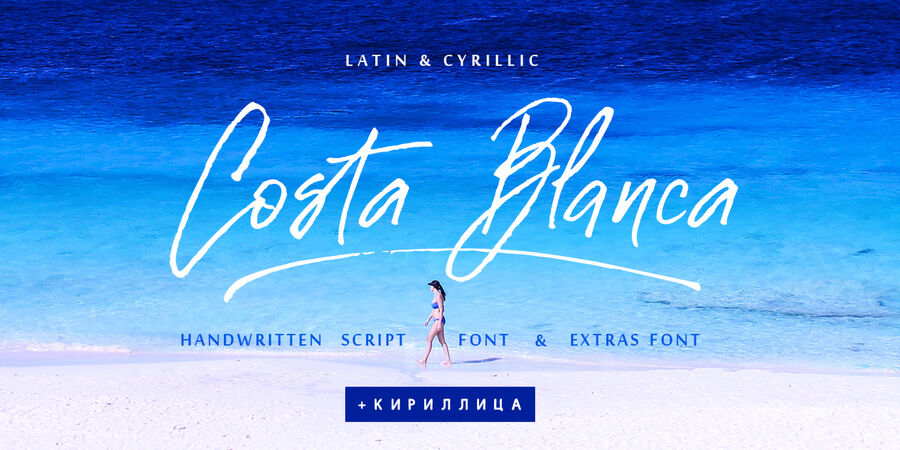 The hand-drawn script Costa Blanca Cyrillic was handwritten with thin colapen and will look great on branding design, posters, apparel, logotype, website header, fashion design, wedding card design, and more.