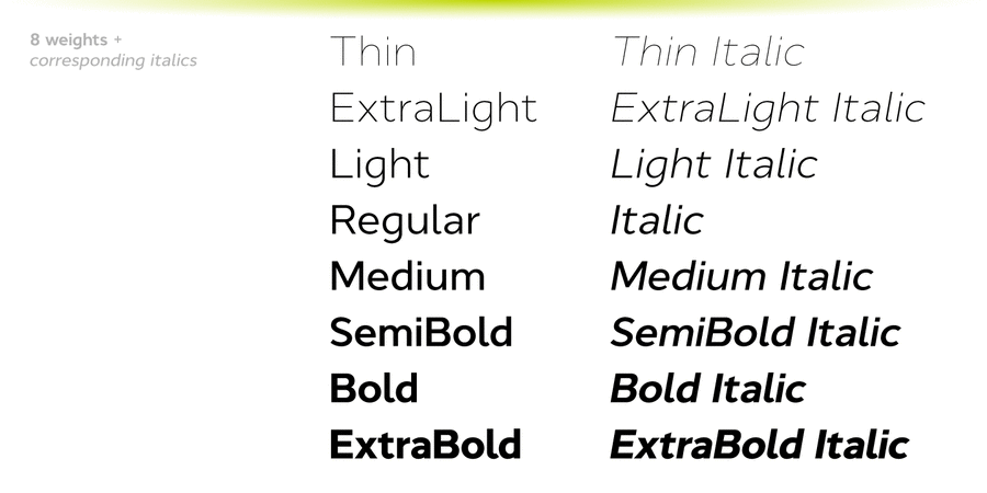 Cyntho Next is a modern geometric sans based on a hybrid waterdrop-like shape with eight weights varying from Thin to Black and featuring Cyrillic.
