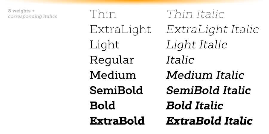 Features of font family Cyntho Next SlabThe hit of the decade: