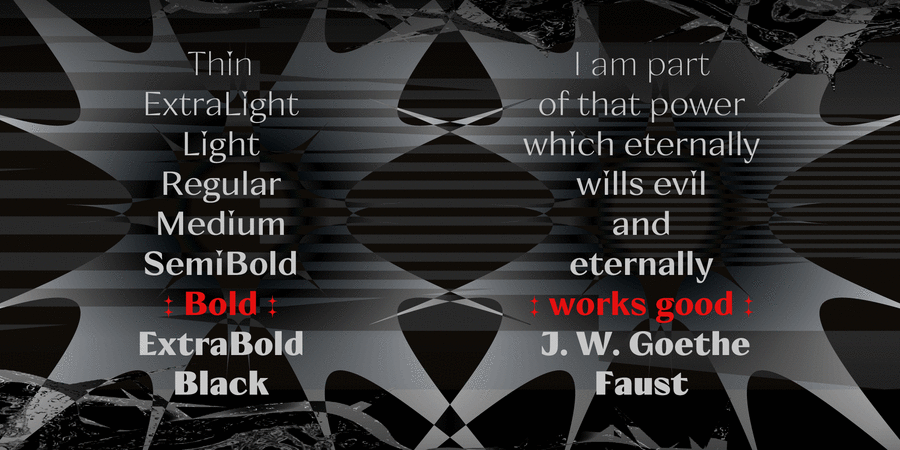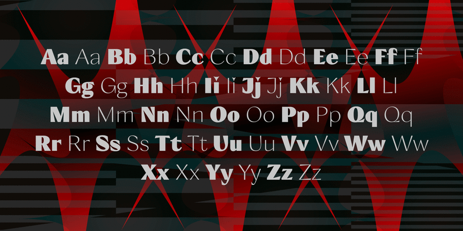 Deviless is a spiky typeface with graceful, flexible shapes and a devilish character. It comes in 9 weights from thin to black. Packed with even sharper alternatives featuring stingers, this typeface will add spice to any design. Whether you're aiming for a bold statement or subtle elegance, Deviless provides a versatile range of options to elevate your creative projects. Designed by Maria Weinstein and Kyrylo Tkachov in 2024.