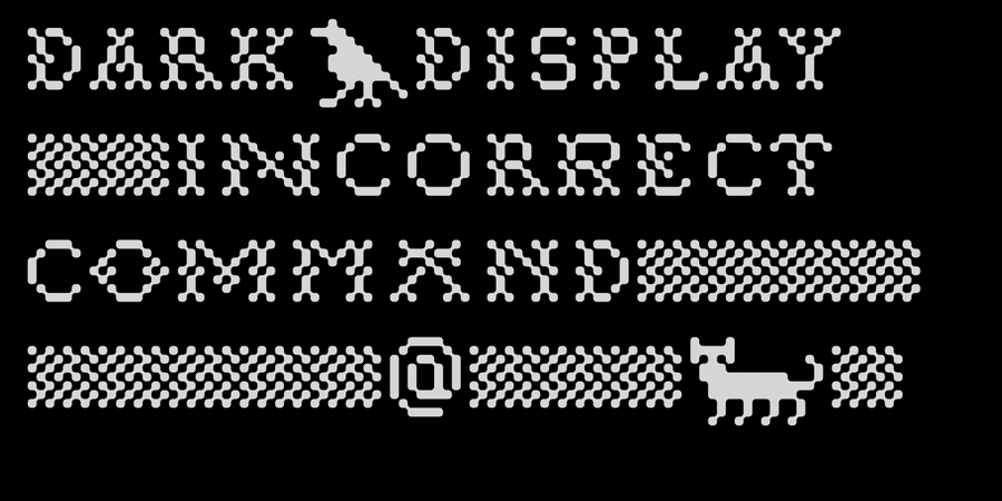 Digital Stitch is the embroidery of the digital era. This font is a mixture of pixel art, traditional cross stitch, and printed circuit boards. Supports many languages and contains ornaments and pictures. Designed by Lukyan Turetskiy in 2013.