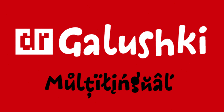 DR Galushki supports 29 languagesUkrainian, English, Russian, Belarusian, Serbian, Bulgarian, Karakalpak, Uzbek (Lat.), Abazin, Avar, Agul, Adyghe, Darginsky, Ingush, Kabardino-Circassian, Kabardian, Karachay-Balkar, Kumyk, Lak, Lezghian, Macedonian, Mordovian-Moksha, Mordovian-Erzya, Nogai, Rutulian, Tabasaran, Tatar, Tsakhur, Chechen Functions of font family DR GalushkiApplication in layout:
