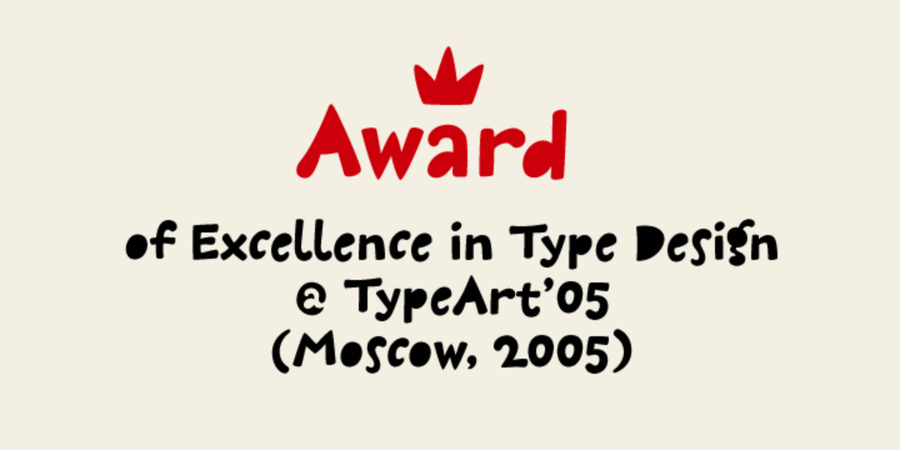 The holeless version of Galushki. This is a soft kind and playful font, ideal for comics, toys, children's books, packaging and promotional products. The typeface was designed by Dmytro Rastvortsev in 2005-2010.