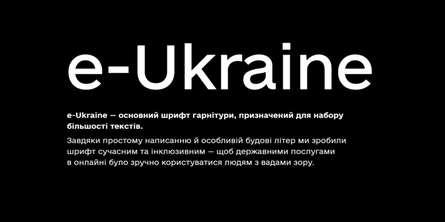 The e-Ukraine typeface is "Ukrainian Helvetica". This font family is used by all state authorities of Ukraine and has become the basis of the state’s visual style online.