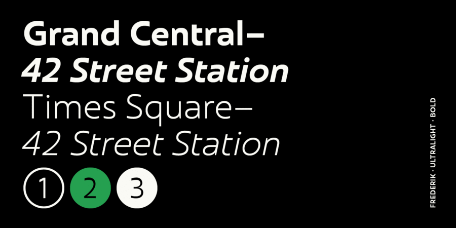 Frederik is a traditional humanist sans with a modern twist. Fresh and neutral in appearance but equally organic and friendly. Frederik features 10 styles ranging from Thin to Black, plus matching italics. Regular and Medium weights work exceptionally well for small body copy, while Light and Heavy styles work best for display purposes — making Frederik a highly versatile type family, suitable for a wide range of uses. Opentype features include inferiors, superiors, fractions, numero sign, circled numbers, stylistic ordinals, ligatures, numerous arrows including extended length, and support for all Latin and Cyrillic languages. Frederik™ is a trademark of The Northern Block. Designed by Ksenia Belobrova in 2019.