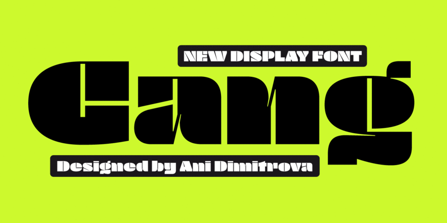 Gang is a two style display font family with a stencil variant. Both font styles contain a set of extended Latin and Cyrillic, as well as all sorts of open type features: standard ligatures, proportional figures, numerals, arrows, matching currency symbols, and fractions. In both styles, the font is well-suited for large headlines, word emphasis, and different types of advertising. The fonts' wide proportions make them a perfect choice for screen usage. This style palette offers a flexible range for display typography. The Gang type family is ideally suited for magazines, branding, posters, as well as web and screen design, and more. The typeface was designed by Ani Dimitrova in 2022.