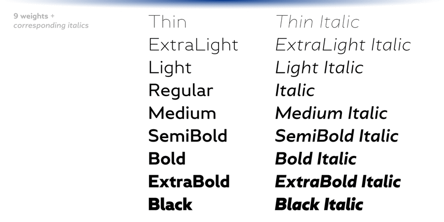 Greenwich is a modern-looking humanized sans-serif typeface with open aperture, inspired by the works of English typographers in 1910s–1920s. It comes in 9 weights accompanied with matching mixed-style italics. Containing over 950 glyphs, Greenwich offers extensive language support including Cyrillic, multiple OpenType features and numerous alternate glyphs to choose from. It works great in long paragraph texts, but is expressive enough to be used in headlines and branding applications as well. The typeface was designed and released by Andriy Konstantynov in Mint Type foundry in 2019.