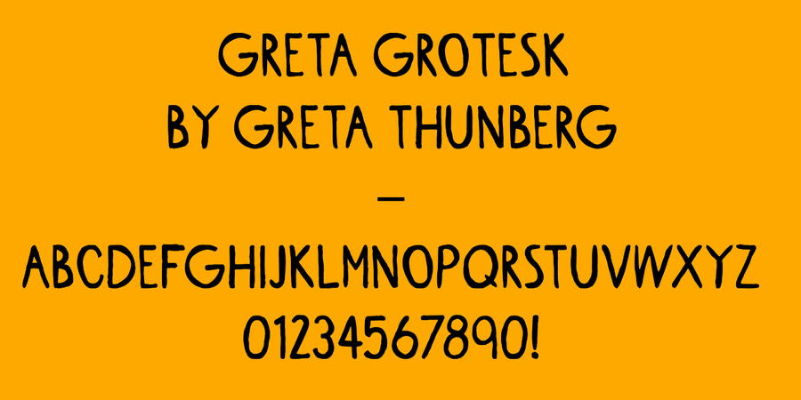 Greta Grotesk is a typeface with global mission, inspired by the teenage activist’s handwriting of Greta Thunberg. Free for personal-use. For commercial use please contact the owner. In terms of where Tal would like the typeface to be used, he says: “The obvious usage would be to produce any sort of collateral that relates to climate change. But I think the biggest contribution this could have is actually beyond the immediate urge to use it in a poster. Fonts have this amazing ability to trigger memory – just like hearing a song you haven’t stumbled upon in a long time transports you to a different time and place… Hopefully, Greta Grotesk is just another unexpected place that will remind us of this pressing problem and the actions we must take to bring real change. Also, it’s conveniently located right above Helvetica – so you won’t be able to avoid it.” The typeface was designed by Tal Shub (Shuv) in 2019.