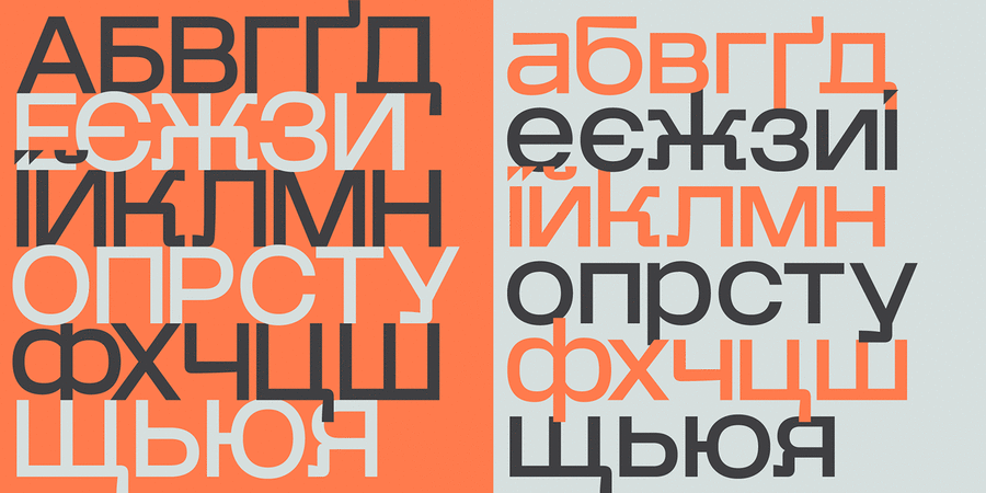 Hit of 1930s Hit of 1980s Grunt Grotesk supports 83 languagesUkrainian, English, German, Polish, Portuguese, Spanish, French, Russian, Czech, Dutch, Italian, Swedish, Turkish, Finnish, Belarusian, Serbian, Bulgarian, Estonian, Lithuanian, Albanian, Afrikaans, Basque, Breton, Valencian, Galician, Gaelic (Scottish), Danish, Indonesian, Irish, Icelandic (Win), Karakalpak, Catalan, Norwegian, Occitan, Rhaeto-Romance, Sami Lule, Tswansky, Uzbek (Lat.), Faroese, Frisian, Chamorro, Estonian (Win), South Sami, Albanian (Win), Hungarian, Upper leprechauny, Karelian, Latvian (Mac), Lithuanian (Mac), Maori (Mac), Moldovan (Lat.), Lower Sorbian, Romanian (Win), Slovak, Slovenian, Turkmen (Lat.), Croatian (Win), Estonian (Mac), Kurdish, Latvian, Maori, Romanian, Abazin, Avar, Agul, Adyghe, Darginsky, Ingush, Kabardino-Circassian, Kabardian, Karachay-Balkar, Kumyk, Lak, Lezghian, Macedonian, Mordovian-Moksha, Mordovian-Erzya, Nogai, Rutulian, Tabasaran, Tatar, Tsakhur, Chechen Functions of font family Grunt GroteskApplication in layout: