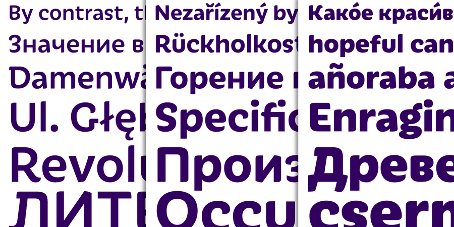 Both the LAT and CYR series conform to most standard codepages used by typical software covering their respective scripts. All three series have similar OpenType functionality.