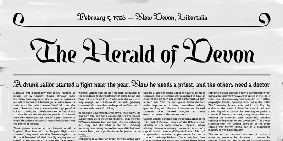 Styles: Aerial, Light, Blessed, Dark, Engraved, Initials. Initials: Kingfall Initials is a font family style that includes decorative uppercase letters – Initials. Optical Size: The typeface is presented in two optical sizes: Aerial, Light, Blessed, Engraved, Initials (high contrast, more elegant, for large-size text) and Kingfall Dark (medium contrast, rough, for small-size text). Stylistic Set 2 “Decorations”: The font contains 20 decorative elements for book chapter layout. They can be applied in two ways: Stylistic Set 1 “Arrows”: Left <- Right ->; Up <| Down |> Left Right <-> Up Down <|> North West <\ North East /> South East \> South West Stylistic Set 3 “Classic Y”: The letter “Y” (including diacritical versions) is replaced with a more familiar letterform. Stylistic Set 4 “Descended epsilon”: The Greek lowercase epsilon is replaced with a more cursive version featuring a longer descending stroke. Stylistic Set 5 “Long tail tse shcha”: The Cyrillic letters “ц” and “щ” gain elongated tails that curve horizontally under the letter. Stylistic Set 6 “Alternate be”: The form of the Cyrillic letter “б” is replaced from the Bulgarian form to the Eastern European variant. Contextual Alternates: fa ra ru ry гa is The typeface was designed by Michael Rafailyk in 2024. Boss's Day