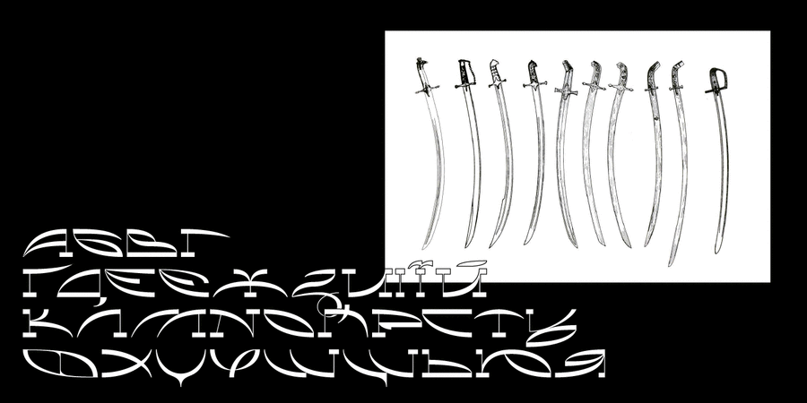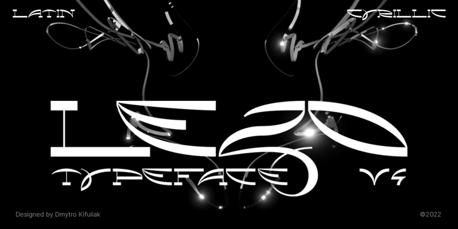 Lezo is a futuristic display font with Ukrainian vibe, inspired by the forms of swords XV-XVIII centuries. By definition, lezo means (a blade) is a sharp part of a sword, that is cut, pricked or chopped. The goal was to create letters that become words to cut way in unknown. Over time, the letters began to sharpen their forms, and that's what you see.
