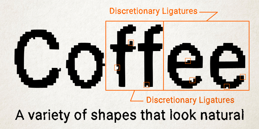 This typeface is a good way to add a vintage analog look to your design. Brutal pixels have chaotic errors, like a damaged signal of fax-modem or a print made on low resolution printer. Designed by Lukyan Turetskiy in 2020.