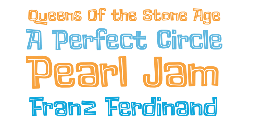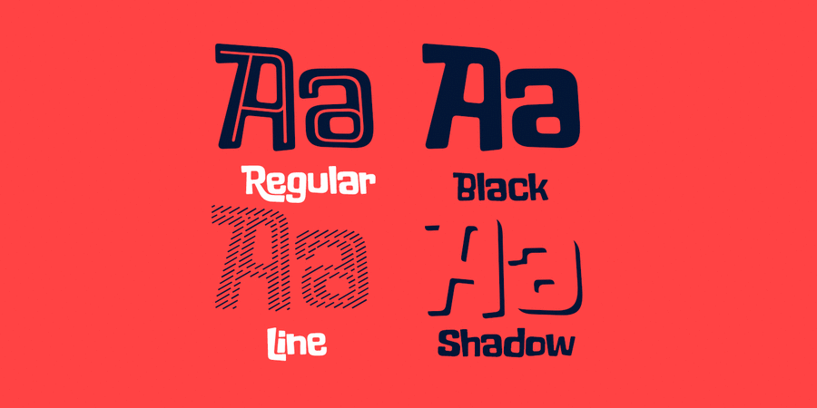 Typeface was inspired by the logo from “Lollapalooza”. The intention was to design a cheerful, entertaining typeface. Lolapeluza works perfectly for designs for children and youth. 4 variants are also included: Regular - Basic set, Black, Shaddow and Line. Lolapeluza can be used as multilayered typeface. A Cyrillic alphabet and a set of alternatives is also included. Designed by Rodrigo Araya Salas and Hector Barroso in 2015.