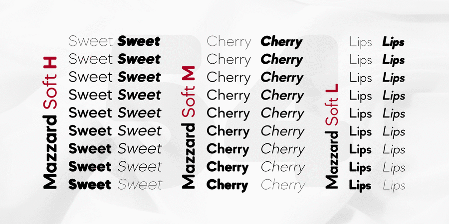 Mazzard Soft M is a part of Mazzard Soft font family – rounded version of Mazzard superfamily. It has two more geometric grotesques with different x-heights (H and L).
