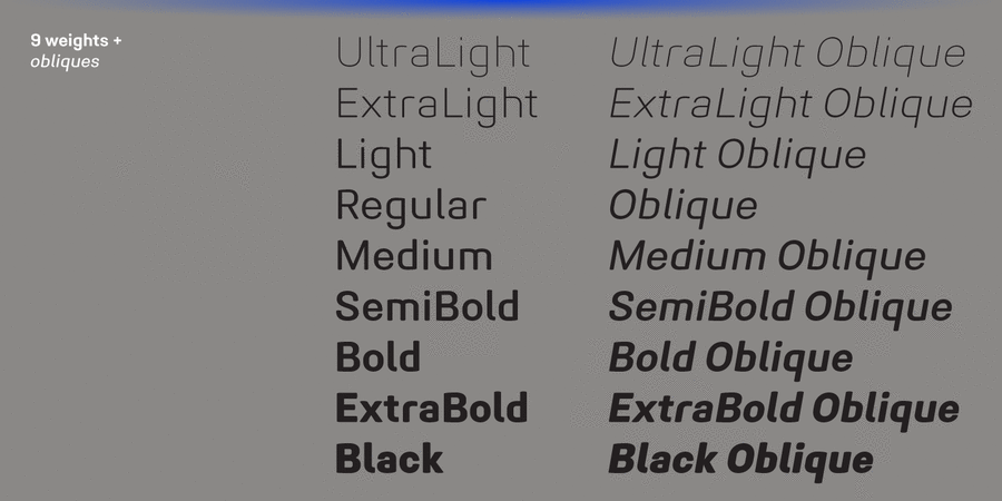 Midpoint Pro comes in 9 weights + oblique styles, each supporting numerous Latin-based languages as well as major Cyrillic languages. It is packed with OpenType features like ligatures, small caps, 4 sets of digits, 2 stylistic sets, superiors and inferiors, fractions, ordinals, respective punctuation varieties including all-cap punctuation, as well as language-specific alternates. The typeface was designed and released by Oleh Lishchuk in Mint Type foundry in 2016.