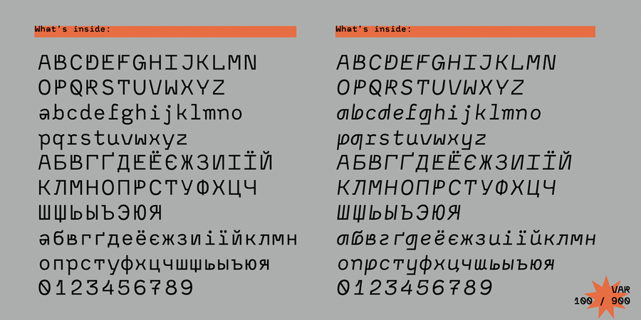 Monofontis is a contemporary, monospaced display typeface full of ligatures and glyphs to keep your designs stylish, modern, and standing out in a crowd. Monofontis typeface has a contrasting character that combines laconic technical forms, extraordinary details, and calligraphic grace, most noticeable in Italic. As a monospaced typeface, Monofontis will be indispensable for magazine titles, headlines, and short text fragments, logos and branding, web and interface design, posters, and advertising due to its unique nature. Furthermore, Monofontis is an excellent match for a tabular design, columns, clear and rigid layouts, and programming code. Monofontis consists of 18 styles: 9 styles in the Basic family, 9 styles in Italics. Designed by Maria Weinstein with art direction of Kyrylo Tkachov in 2020.