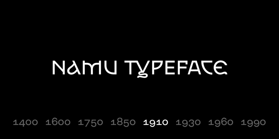 NAMU Art Nouveau is a font 1910 from free typeface for National Art Museum of Ukraine. NAMU is a geometric sans serif with a deep history and daring experiments. Red Dot winner 2019 at Corporate Design and Identity category. At the end of 2018, the National Art Museum of Ukraine and Banda agency presented a new identity. The NAMU typeface became the basis of the visual style. To create this basis, designer Dmytro Rastvortsev immersed himself in the research of the museum fund, archival documents and outlines of ancient letters. As a result, the final NAMU typeface has 20 stylistic sets in the NAMU Pro version and 9 separate font styles for each historical period. NAMU typeface is free for commercial and non-commercial use. But the font files must not be decompiled. License Creative Commons CC BY-ND 4.0. Created by Dmytro Rastvortsev in 2018-2022.