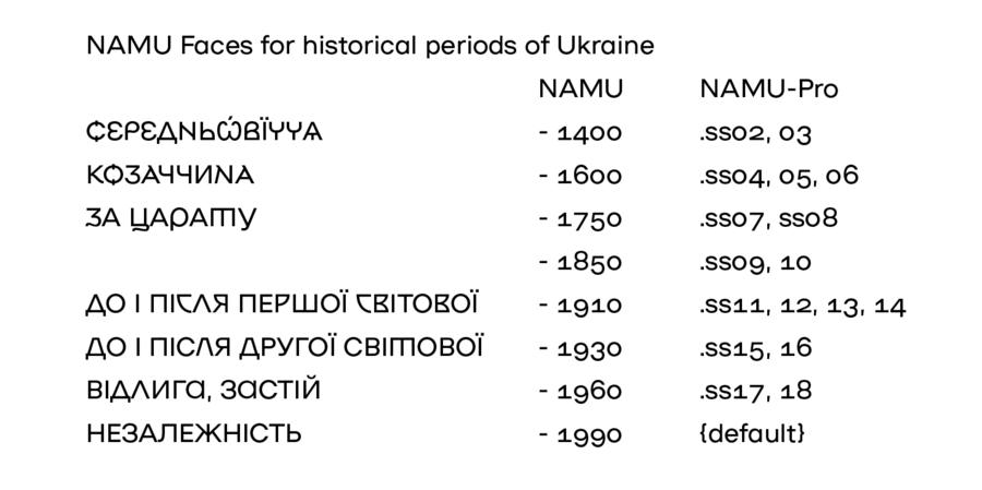 Hit of 2010s NAMU Pro supports 89 languagesUkrainian, English, German, Polish, Portuguese, Spanish, French, Greek (modern), Old Slavonic, Russian, Czech, Dutch, Italian, Swedish, Turkish, Finnish, Belarusian, Greek, Serbian, Bulgarian, Estonian, Lithuanian, Albanian, Afrikaans, Basque, Breton, Valencian, Galician, Gaelic (Scottish), Danish, Indonesian, Irish, Icelandic (Win), Karakalpak, Catalan, Norwegian, Occitan, Rhaeto-Romance, Sami Lule, Tswansky, Uzbek (Lat.), Faroese, Frisian, Chamorro, Estonian (Win), South Sami, Albanian (Win), Hungarian, Upper leprechauny, Karelian, Latvian (Mac), Lithuanian (Mac), Maori (Mac), Moldovan (Lat.), Lower Sorbian, Romanian (Win), Slovak, Slovenian, Turkmen (Lat.), Croatian (Win), Estonian (Mac), Kurdish, Latvian, Maori, Romanian, Abazin, Avar, Agul, Adyghe, Darginsky, Ingush, Kabardino-Circassian, Kabardian, Karachay-Balkar, Kumyk, Lak, Lezghian, Macedonian, Mordovian-Moksha, Mordovian-Erzya, Nogai, Rutulian, Tabasaran, Tatar, Tsakhur, Chechen, Russian (XIX), Russian (XVIII), Russian (X–XVII) Functions of font family NAMU ProApplication in layout: