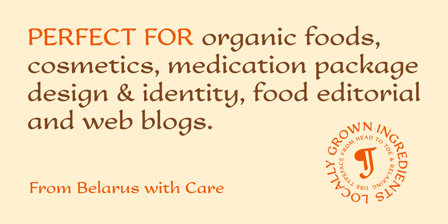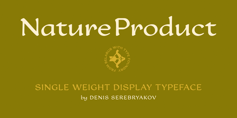 Nature Product it's a single weight display font with ideology of healthy lifestyle and nutrition. Pure curves based on calligraphy method. Font perfect for use in organic foods, cosmetics, medication package design & corporate identity projects, food editorial prints and web blogs. Enjoy! The typeface was designed by Denis Serebryakov in 2016.