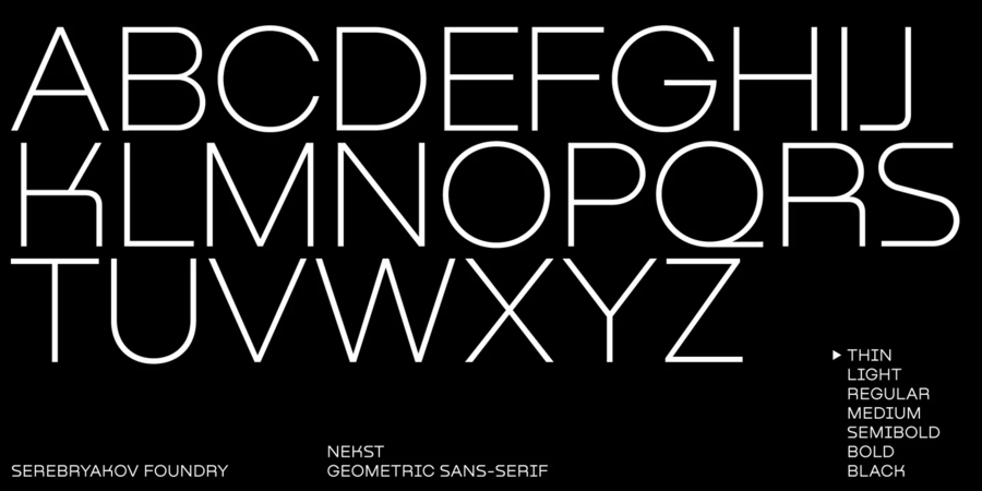 Nekst is geometric sans-serif. So it can only seem at first glance. Non-standard forms of some letters, behave unexpectedly and eccentric in a text line. These forms add notes of old grotesques and futuristic aesthetics to the modern-nordic image. Nekst font family includes seven weights supporting Cyrillic and extended Latin. The typeface was designed by Denis Serebryakov in 2020.