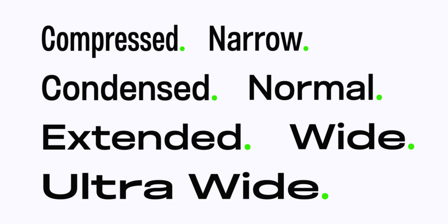 The mood of the family ranges from fairly neutral in Normal and Condensed widths to very flavorful in Compressed and Ultra Wide.