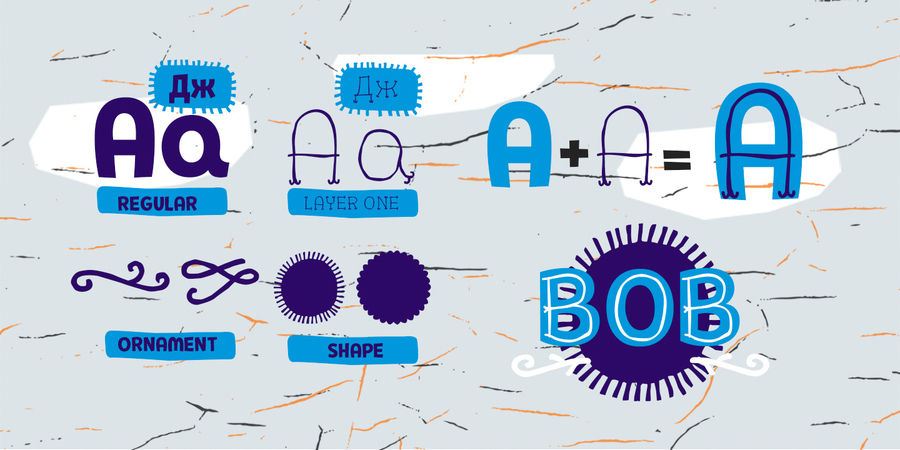 Pequena Pro is a playful, nice and naive font family with two alphabetical (Bold grotesque and Thin hand-drawn) and two non-alphabetic (Ornaments and Backgrounds). Ideal choice for children's books and holiday production. Pequena Pro supports many European languages, as well as Cyrillic. The typeface was designed by Rodrigo Araya Salas with the participation of Andrei Kudryavtsev in 2016.