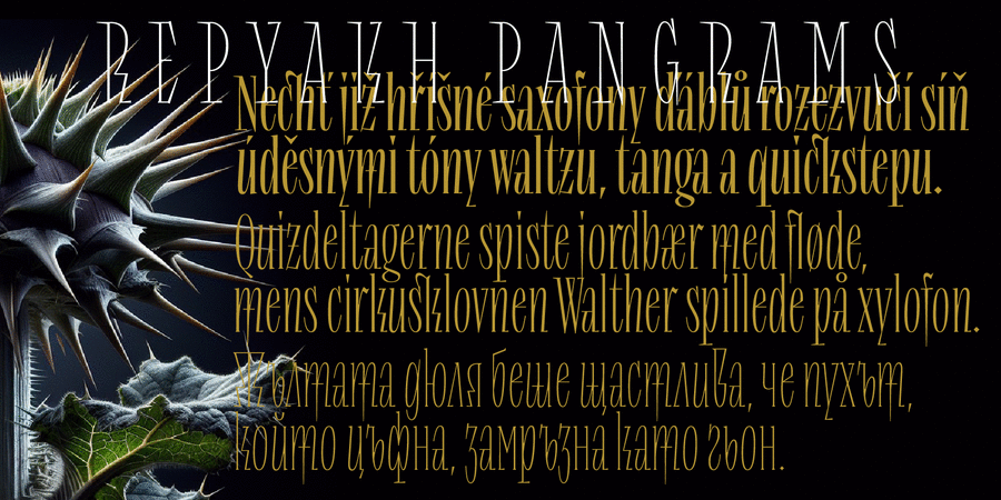 Hit of 1910s Hit of 1920s Repyakh supports 83 languagesUkrainian, English, German, Polish, Portuguese, Spanish, French, Russian, Czech, Dutch, Italian, Swedish, Turkish, Finnish, Belarusian, Serbian, Bulgarian, Estonian, Lithuanian, Albanian, Afrikaans, Basque, Breton, Valencian, Galician, Gaelic (Scottish), Danish, Indonesian, Irish, Icelandic (Win), Karakalpak, Catalan, Norwegian, Occitan, Rhaeto-Romance, Sami Lule, Tswansky, Uzbek (Lat.), Faroese, Frisian, Chamorro, Estonian (Win), South Sami, Albanian (Win), Hungarian, Upper leprechauny, Karelian, Latvian (Mac), Lithuanian (Mac), Maori (Mac), Moldovan (Lat.), Lower Sorbian, Romanian (Win), Slovak, Slovenian, Turkmen (Lat.), Croatian (Win), Estonian (Mac), Kurdish, Latvian, Maori, Romanian, Abazin, Avar, Agul, Adyghe, Darginsky, Ingush, Kabardino-Circassian, Kabardian, Karachay-Balkar, Kumyk, Lak, Lezghian, Macedonian, Mordovian-Moksha, Mordovian-Erzya, Nogai, Rutulian, Tabasaran, Tatar, Tsakhur, Chechen Functions of font family RepyakhApplication in layout: