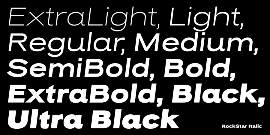 An original sans serif family with a distinct personality. The family has 36 font styles, ranging from ExtraLight to UltraBlack in normal and narrow styles (including italics). A wide range of weights and widths offering tremendous typographic flexibility. Rock Star is a contemporary typeface with roots in the past. It based on the sans-serifs of the late 19th and early 20th century. It would look great for corporate branding, in books and magazines. The typeface was designed by Kyrylo Tkachov in 2020.