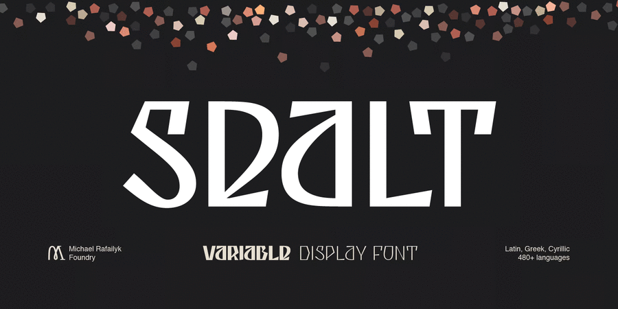 Sealt Typeface is inspired by the oldest saltworks in Eastern Europe, founded in 1390 in Drohobych. Sealt means salt in Old English, so most letters are rough and sharp like salt crystals and seem to be carved out of the rock.
