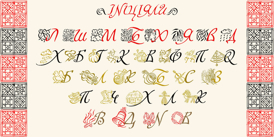 This typeface is a full, corrected and extended version of the font "Skoropys-XVII" with figures, full standard and old style Cyrillic, extended Latin, Greek, additional decorative elements, fleurons, and OpenType-features. It should be noted that the Cyrillic, Latin and Greek letters are able to replace each other with alternatives – this makes it possible to revive the handwritten string and bring the result closer to authentic examples. One of the characteristic features of the cursive, in particular Ukrainian, and at the same time a big problem for the digital fonts is a wide variety of graphemes, which fancifully alternate in the text and create a complex live rhythm. Alternatives in the font allow simple users to get the desired result with a simple glyph table. The font was designed by Victor Kharik and Gennady Zarechnyuk in 2016–2017.