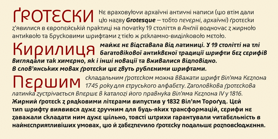 Ukrainian simple, democratic and universal sans serif typeface, built on the principles taught by Vasyl Chebanyk – the author of "Графіка Української Мови". UkrSans supports advanced European Latin and modern Slavic Cyrillic. The typeface was designed by Victor Kharyk in 2019.