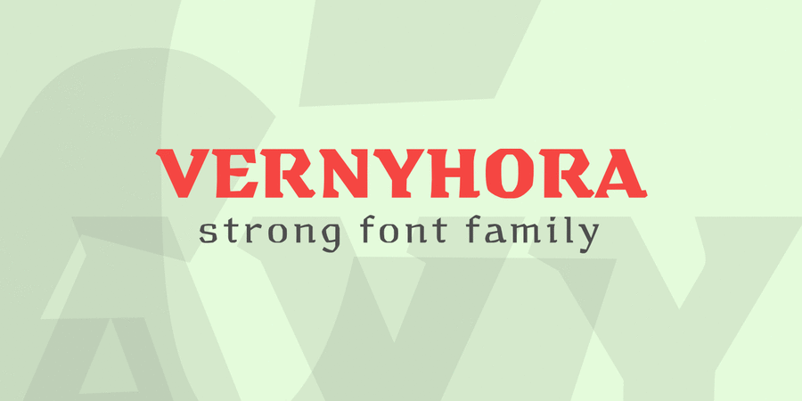 The vintage display font family Vernyhora. The typeface is intended to be used in those places where the letters when it is necessary to transmit the strong character, stability and historicity. The font has got 6 weights. It contains extended Cyrillic and Latin alphabets. It also consists of the alternative set of characters from the old Ukrainian alphabet. It can be used for the state institutions names. It was planned to be a font of old cities and towns. From the very beginning the font was created in order to execute signboards at the entrance of towns. For the font creation the author was inspired by the graphic designers of the early 20th century, such as Georgiy Narbut and Fedir Krychevs'kyi. From the Ukrainian language the font name is translated into English as mountains mover. Vernyhora contains 1 free font style Vernyhora Demo EstraBold. You are free to use it, but do not disassemble or publish the font on your behalf. License for Vernyhora Demo EstraBold:
